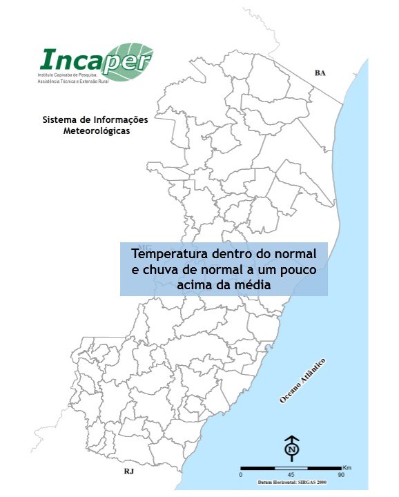 Ainda assim, o consenso do SIM/Incaper é que dezembro de 2017 deva apresentar temperatura dentro do normal e chuva dentro ou um pouco acima do normal na maioria das localidades do estado (Figura 2).