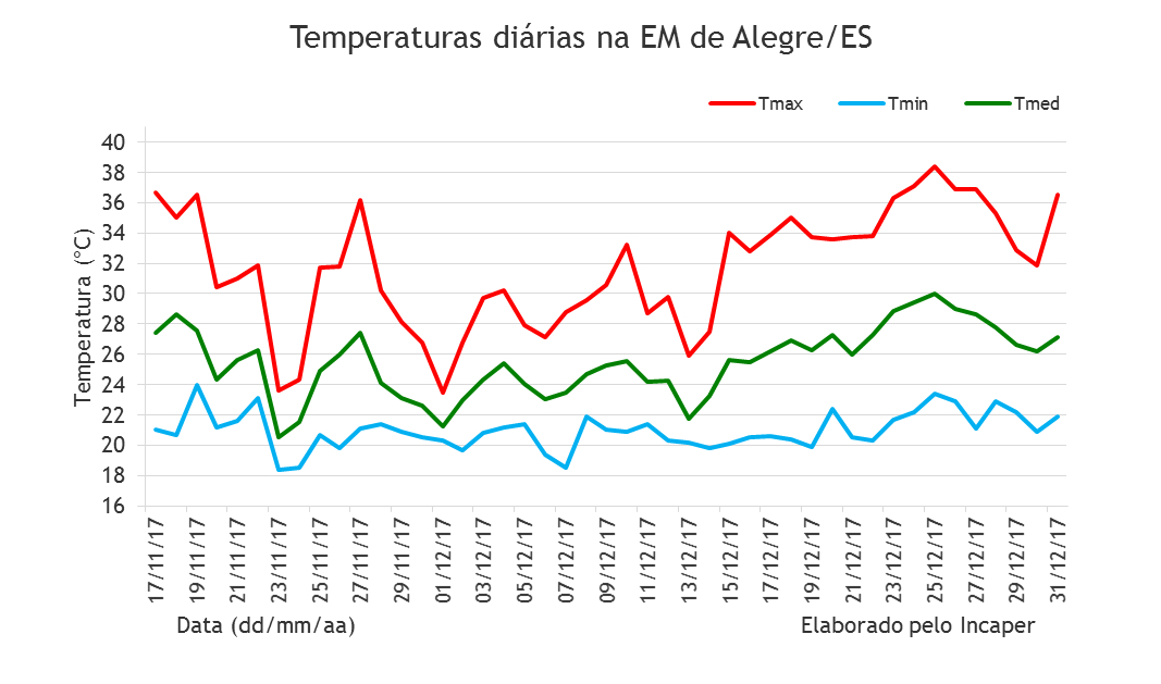 Dados diários de temperatura na estação meteorológica do município de Alegre/ES