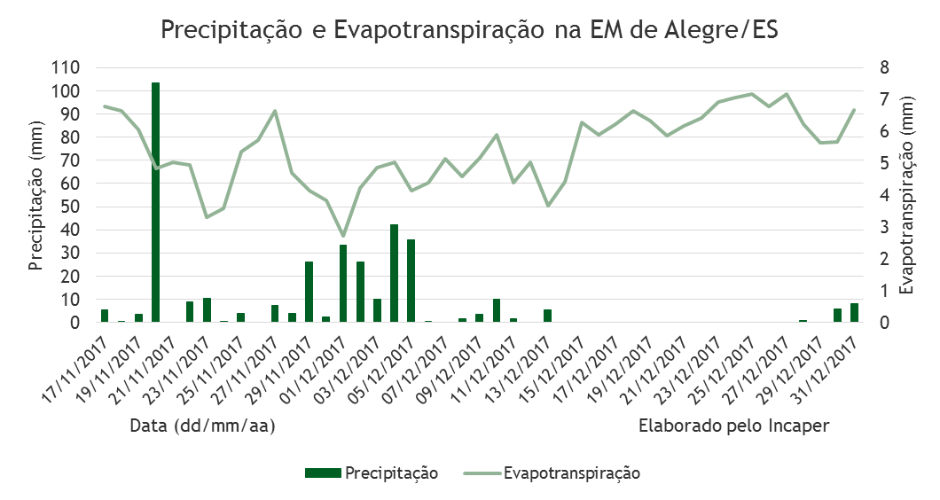Dados de precipitação e evapotranspiração na estação meteorológica do município de Alegre/ES