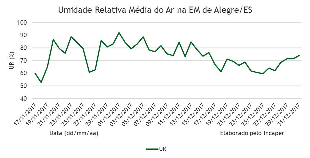 Dados diários de umidade relativa do ar na estação meteorológica do município de Alegre/ES